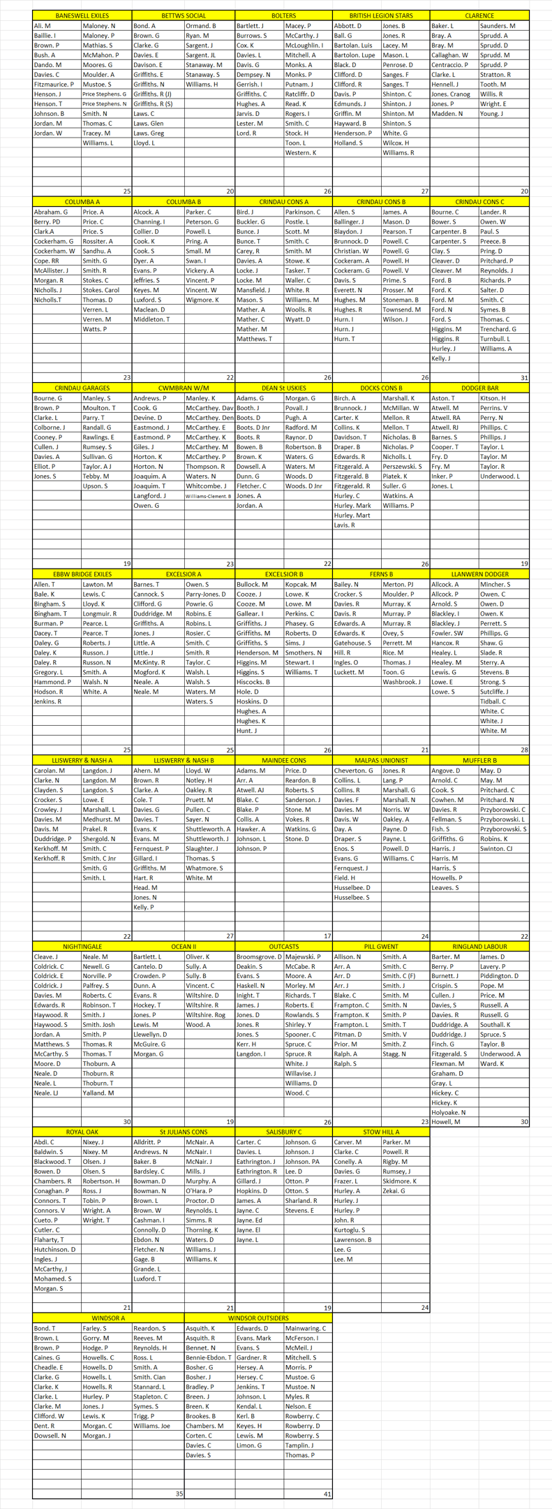 Players Registered